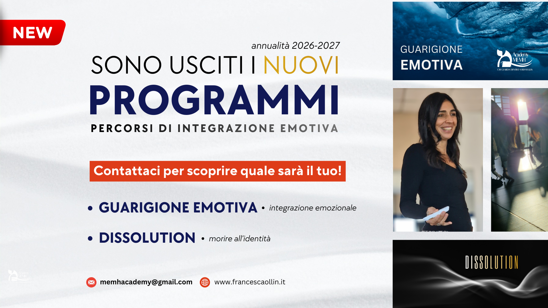 Memh Academy è un cammino di rinascita interiore che ti aiuta a trasformare la tua storia in consapevolezza attraverso la liberazione di memorie emozionali latenti che condizionano la tua vita, impedendoti di stare bene e realizzare ciò che meriti.